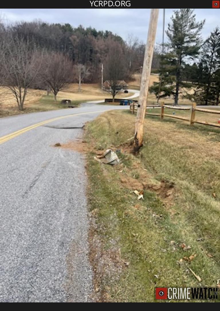 WINDSOR TOWNSHIP, PENNSYLVANIA — The York County Regional Police Department is investigating a hit-and-run crash involving a suspected blue semi-truck after a vehicle slammed into an embankment and a utility pole along Pleasant Grove Road and then fled the scene.