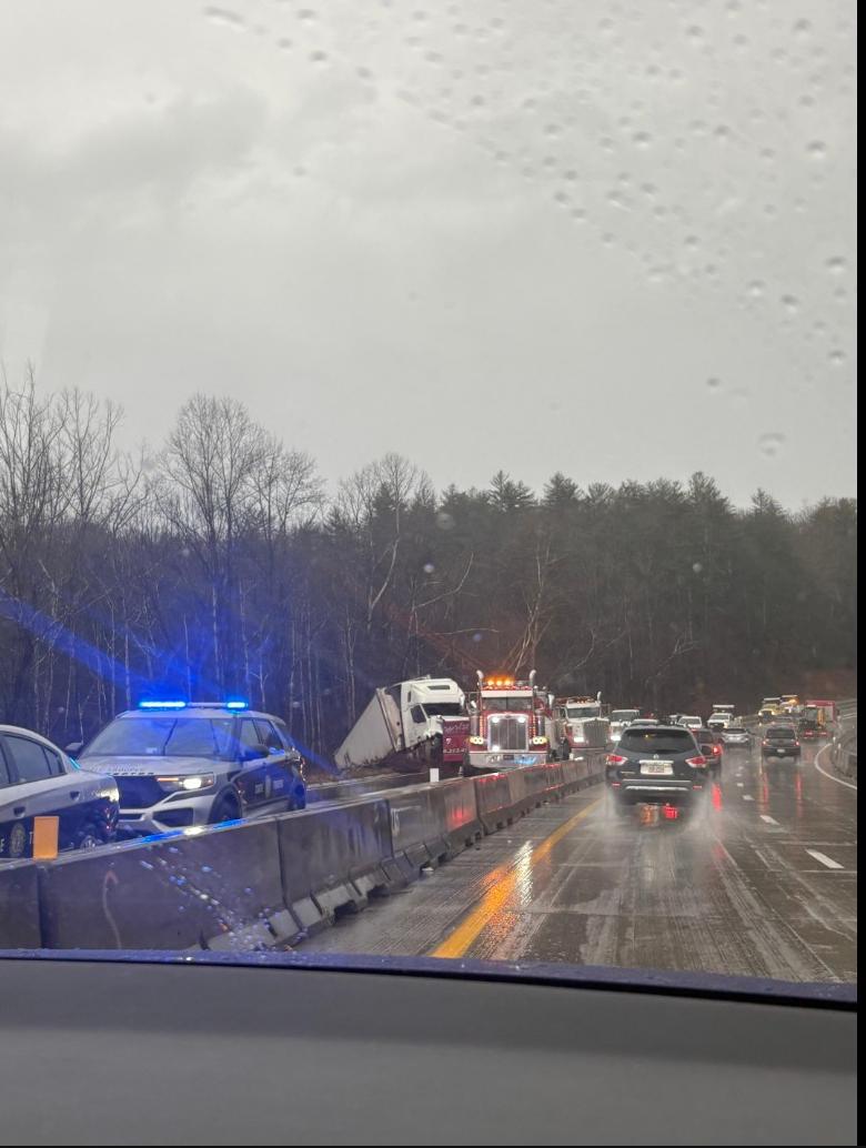 A second crash occurred at approximately 7:03 a.m. in the same location, Highway Patrol said. Troopers reported another tractor-trailer ran off the road to the left and struck a median barrier, then rode up onto the barrier and hit a vehicle traveling eastbound. A third vehicle was also struck by debris, according to officials.