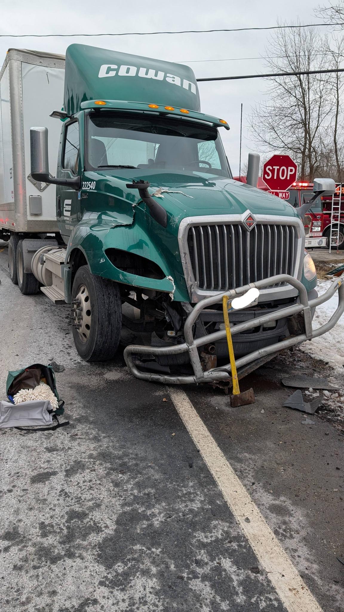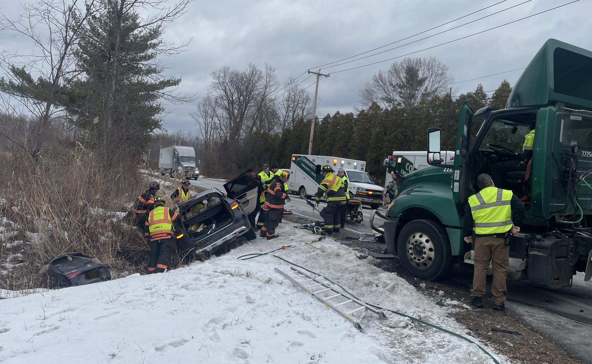 The crash was reported around 11:17 a.m. at Galway Road and Middleline Road, officials said. Responding units were advised it was a car versus tractor-trailer collision with a patient trapped inside the car.