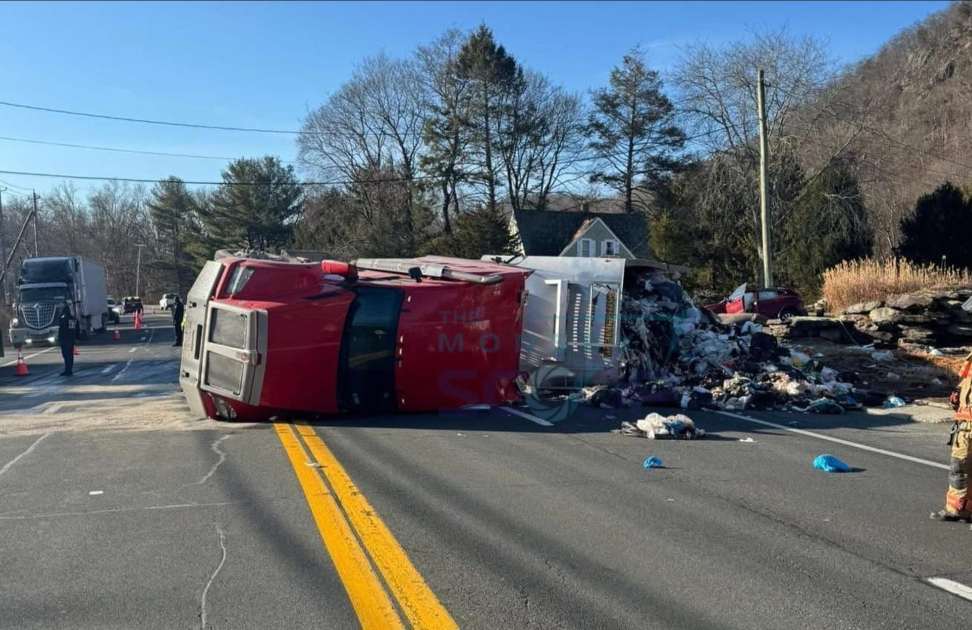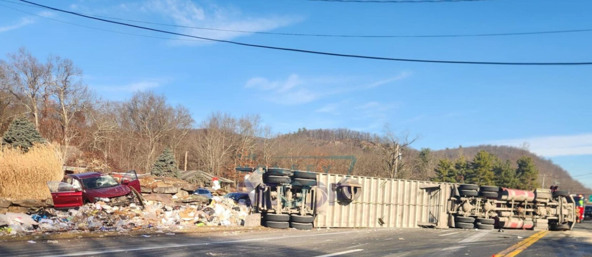 Tractor-Trailer Overturns on Route 17 in Tuxedo, Spills Trash, and Leaves at Least One Injured