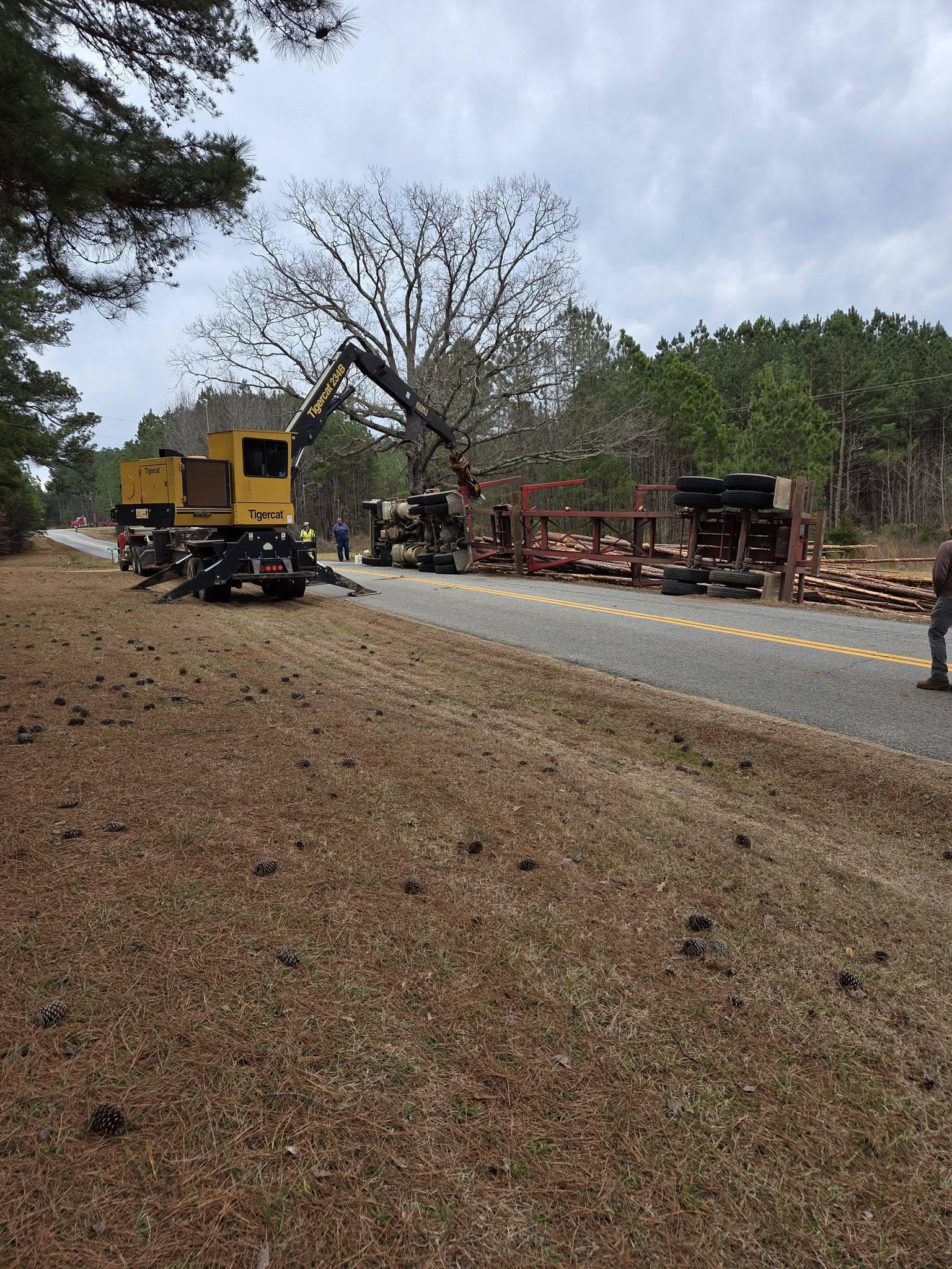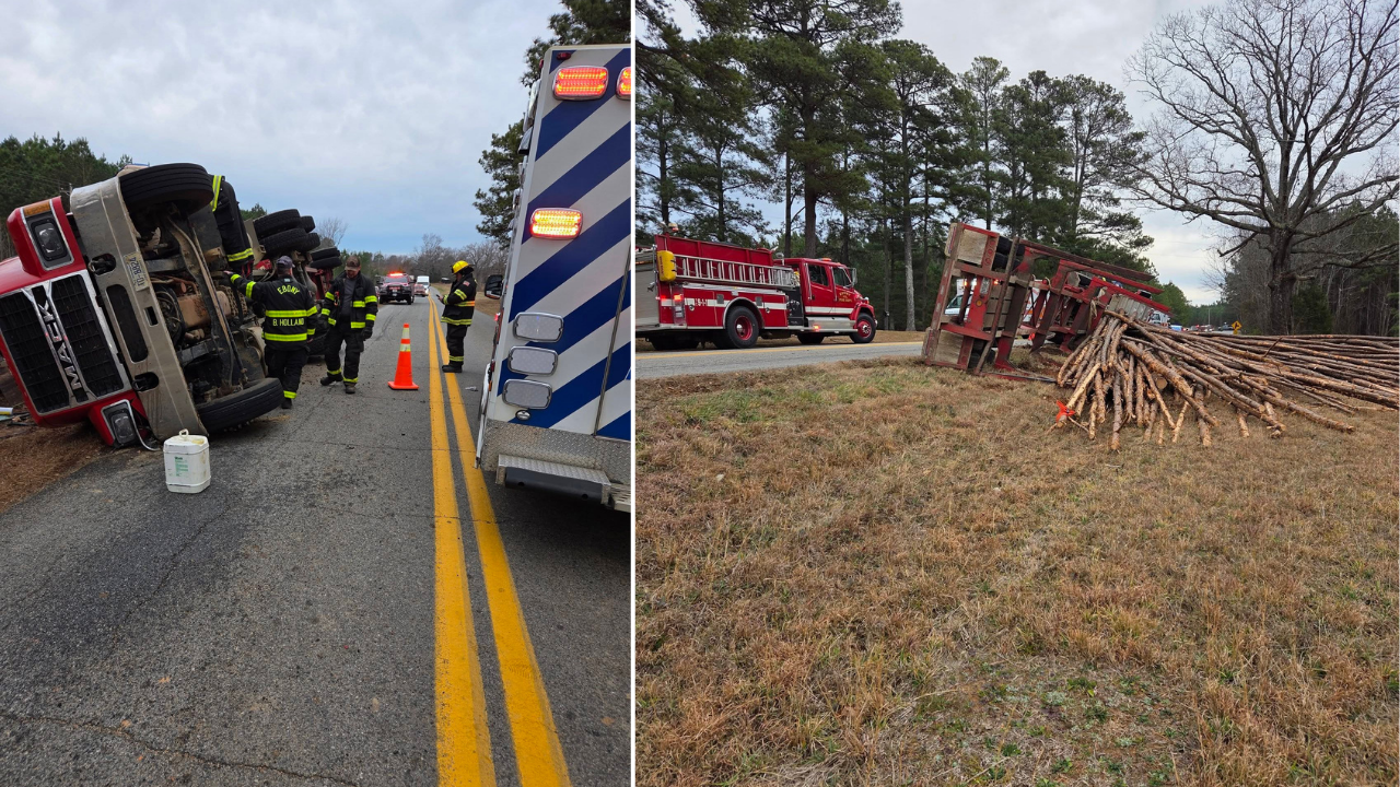 Driver Airlifted After Log Truck Rolls Over in Ebony Area of Brunswick County