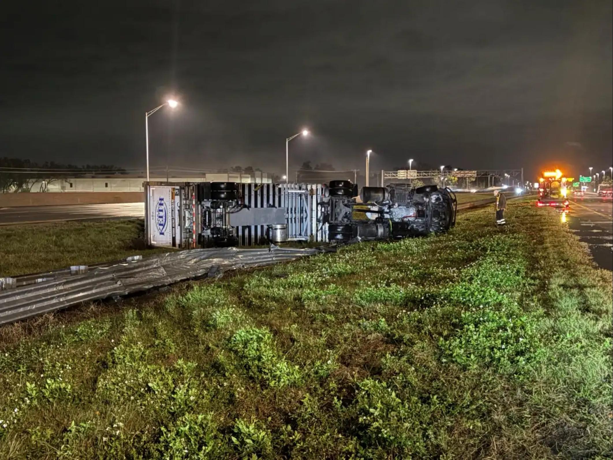 Driver Loses Control and Overturns Tractor-Trailer in the Median on I-75 Southbound in Hillsborough County