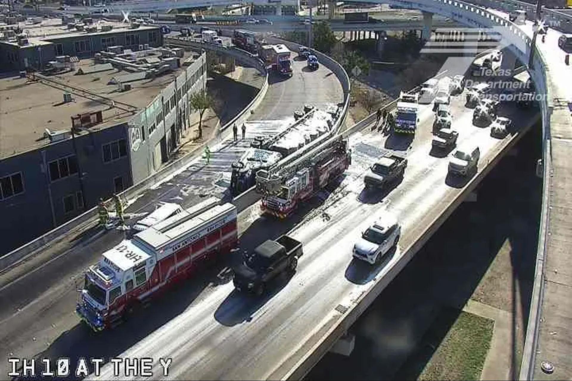 The crash happened around 9:30 a.m. Friday at the Interstate 10 West offramp to eastbound Interstate 35, officials said.