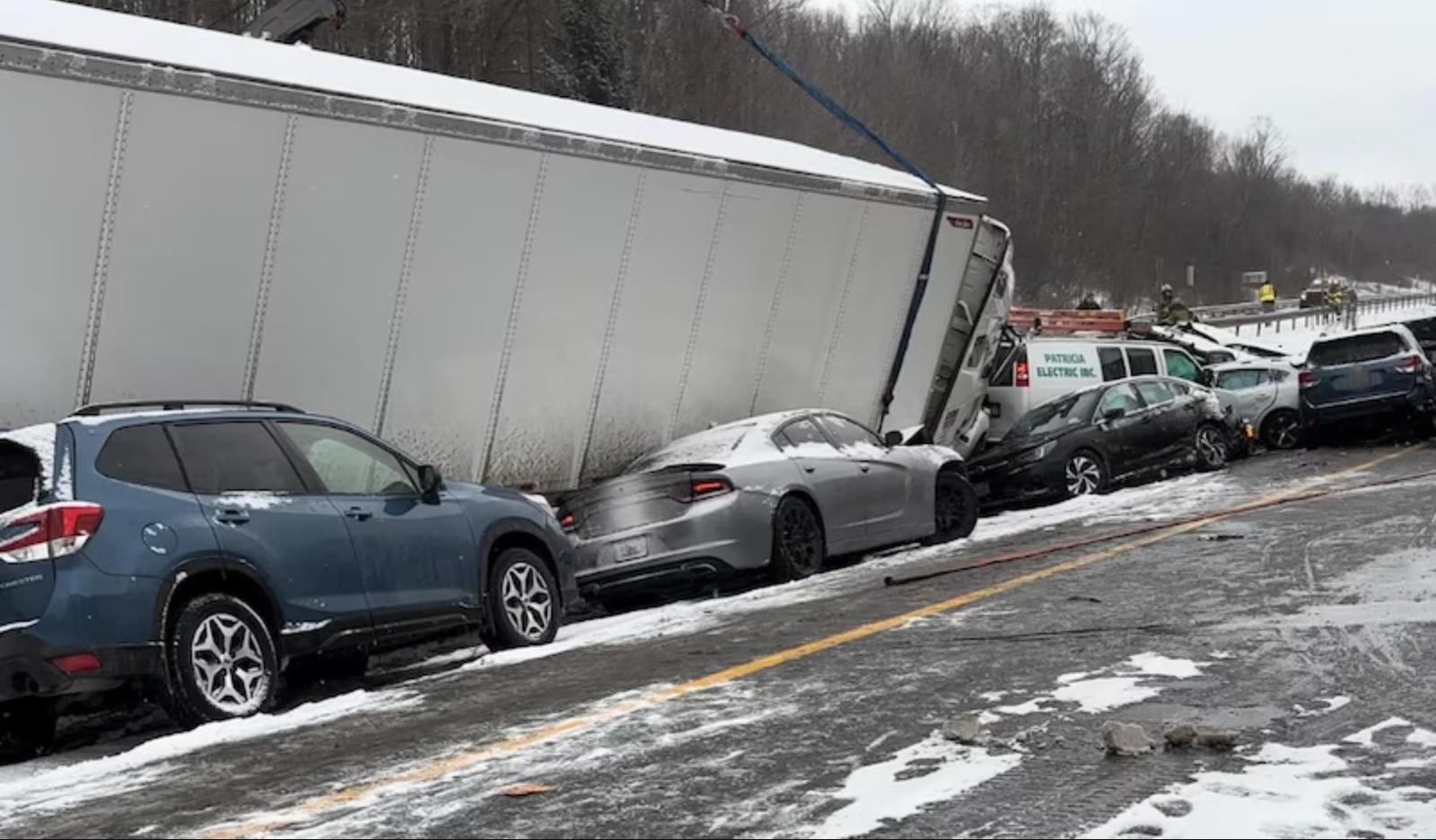 Passenger Calls Semi Driver a “Hero” After He Steers Into Median to Avoid Plowing Into Stopped Cars During 37-Vehicle I-81 Snow Pileup in LaFayette