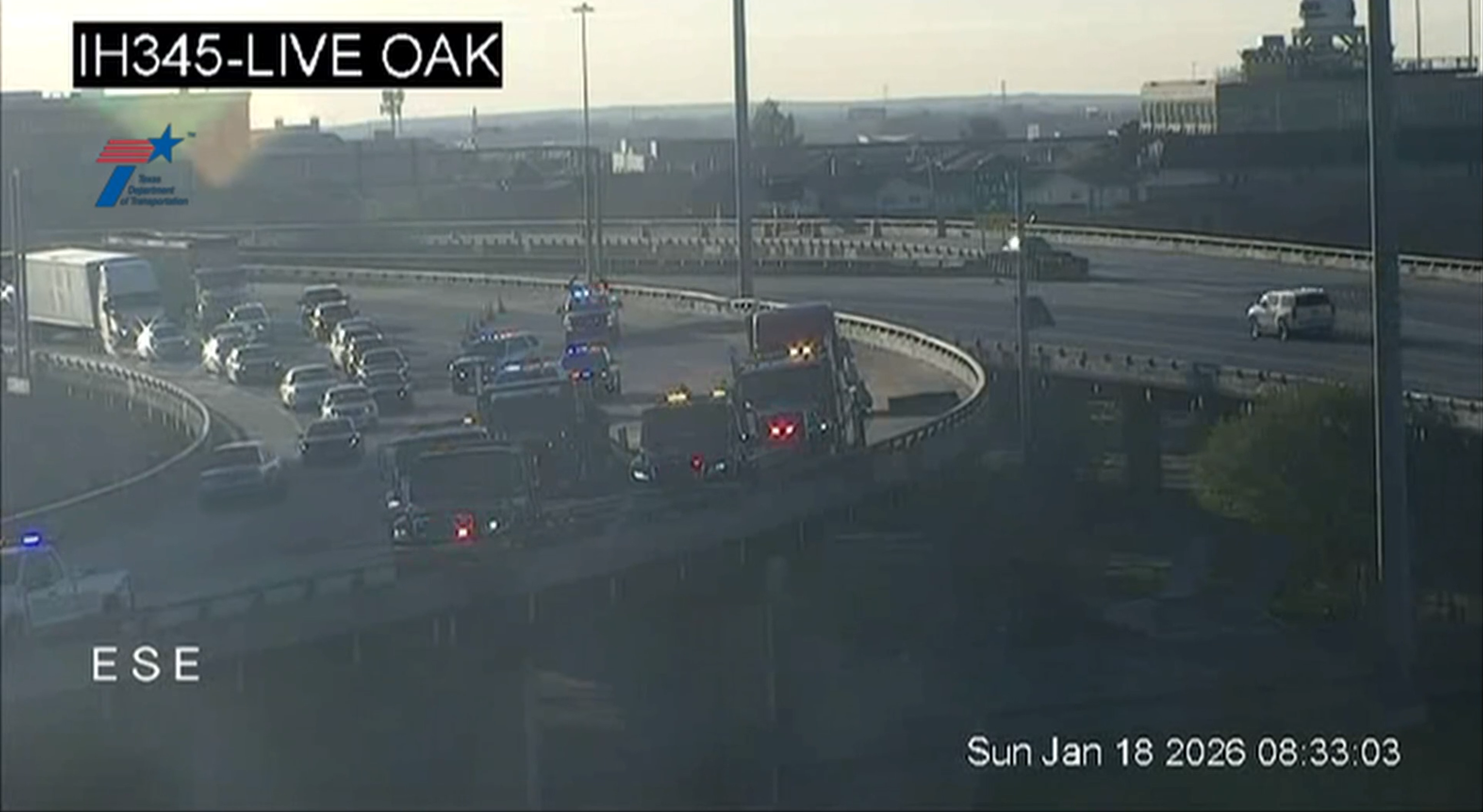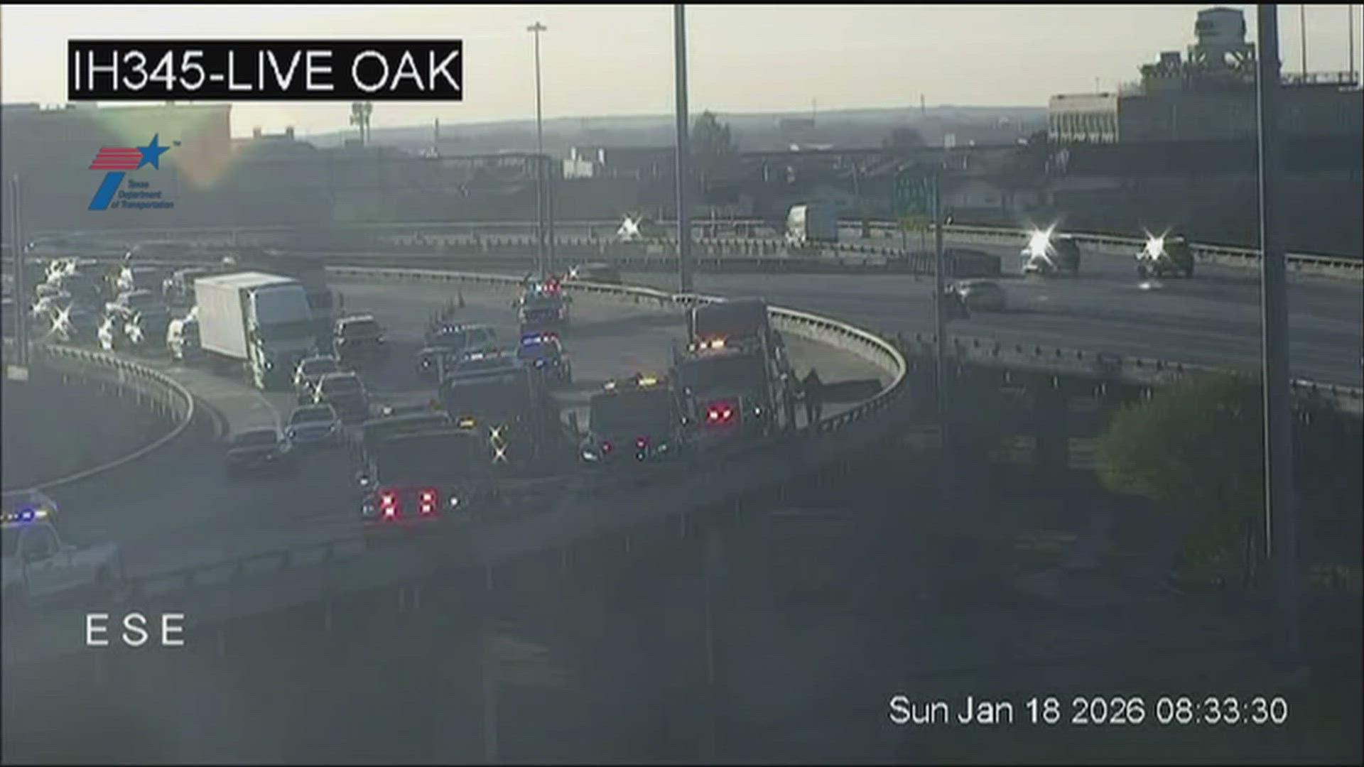 The Dallas County Sheriff’s Office said deputies responded around 6 a.m. Sunday, Jan. 18, to a crash in the westbound lanes of I-30 near I-345. Investigators said an 18-wheeler hit a wall, and part of the trailer fell to the ground below.