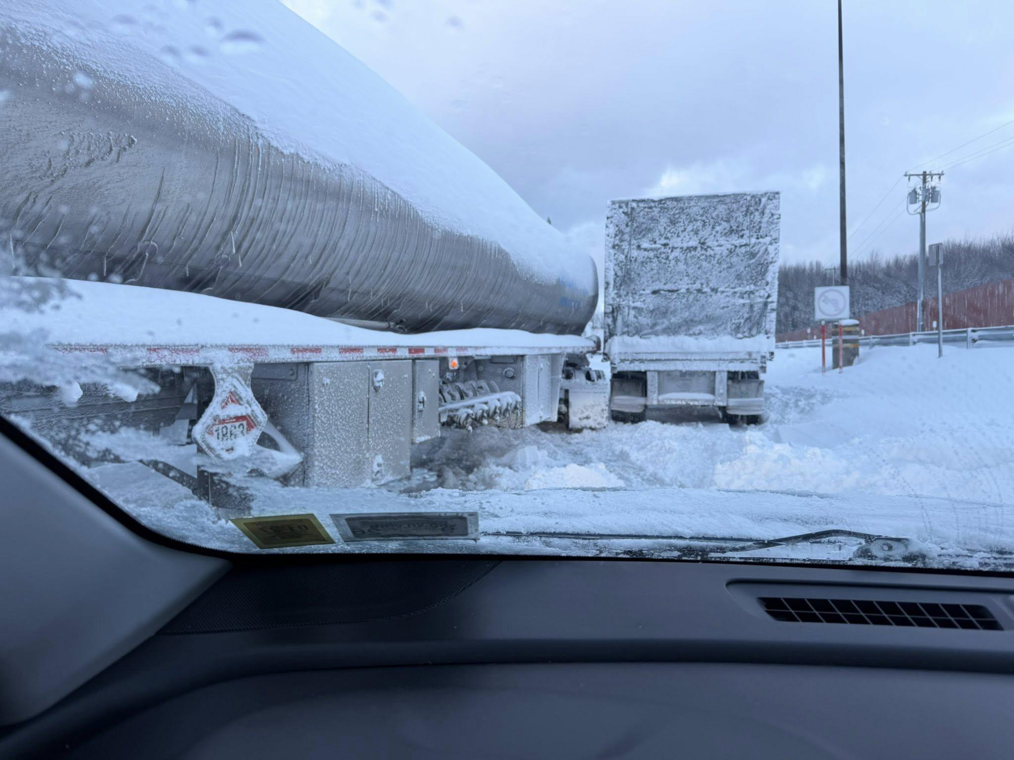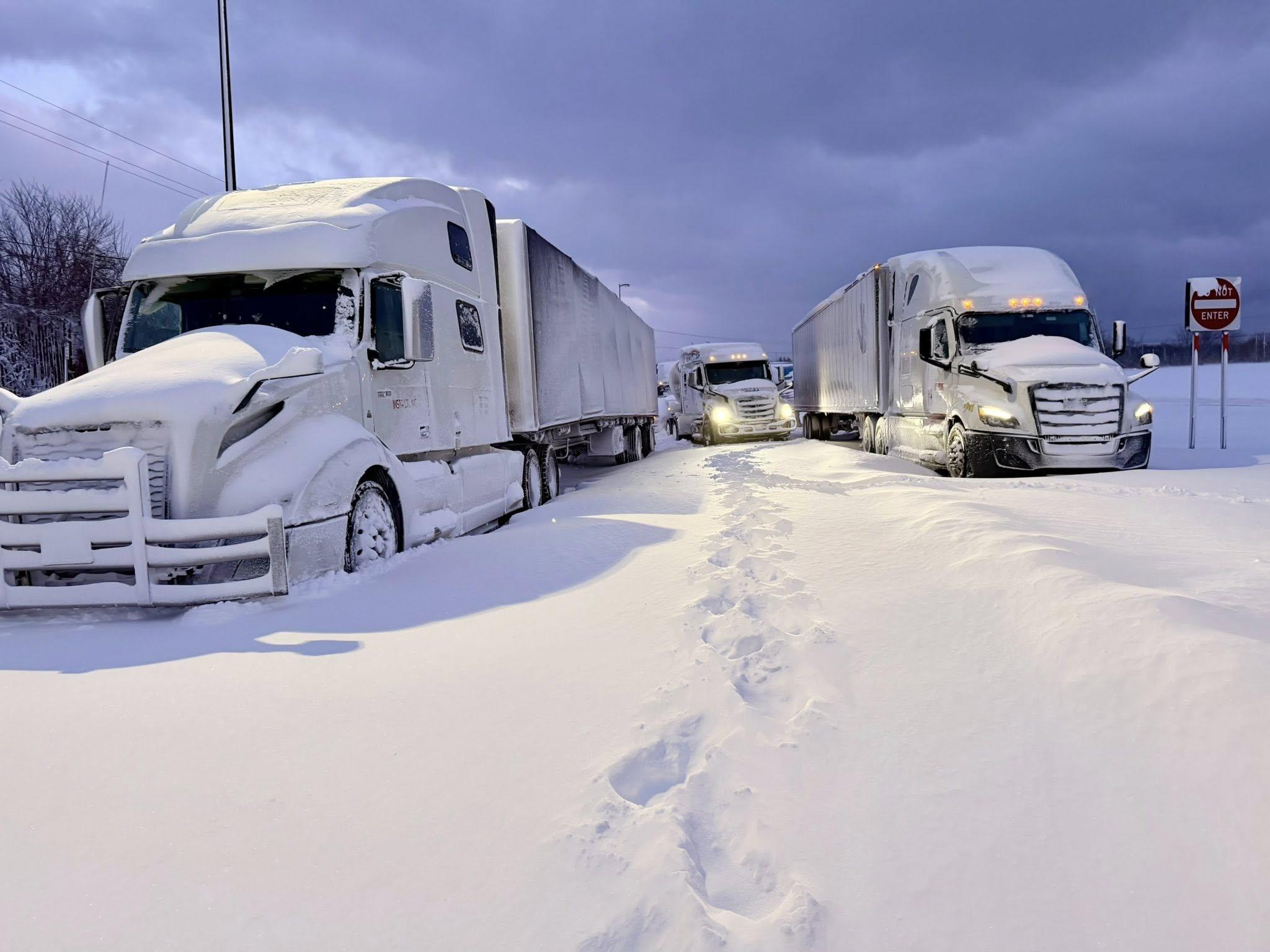 A spokesperson for the New York State Thruway Authority said crews were working to repair a frozen water valve to restore water service, and plows were working to clear the parking lots so drivers could depart. Another update later indicated water was restored the next morning, and crews were able to dig out trucks and get them moving.