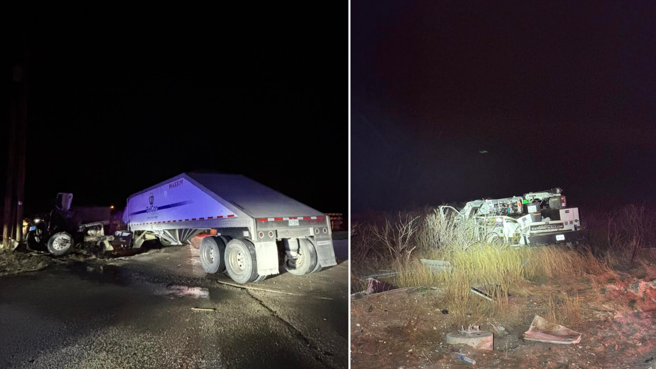 KERMIT, TEXAS — Two drivers were injured Monday evening after a two-vehicle crash involving a commercial motor vehicle and a utility truck on State Highway 302 in Winkler County, according to the Winkler County Sheriff’s Office.