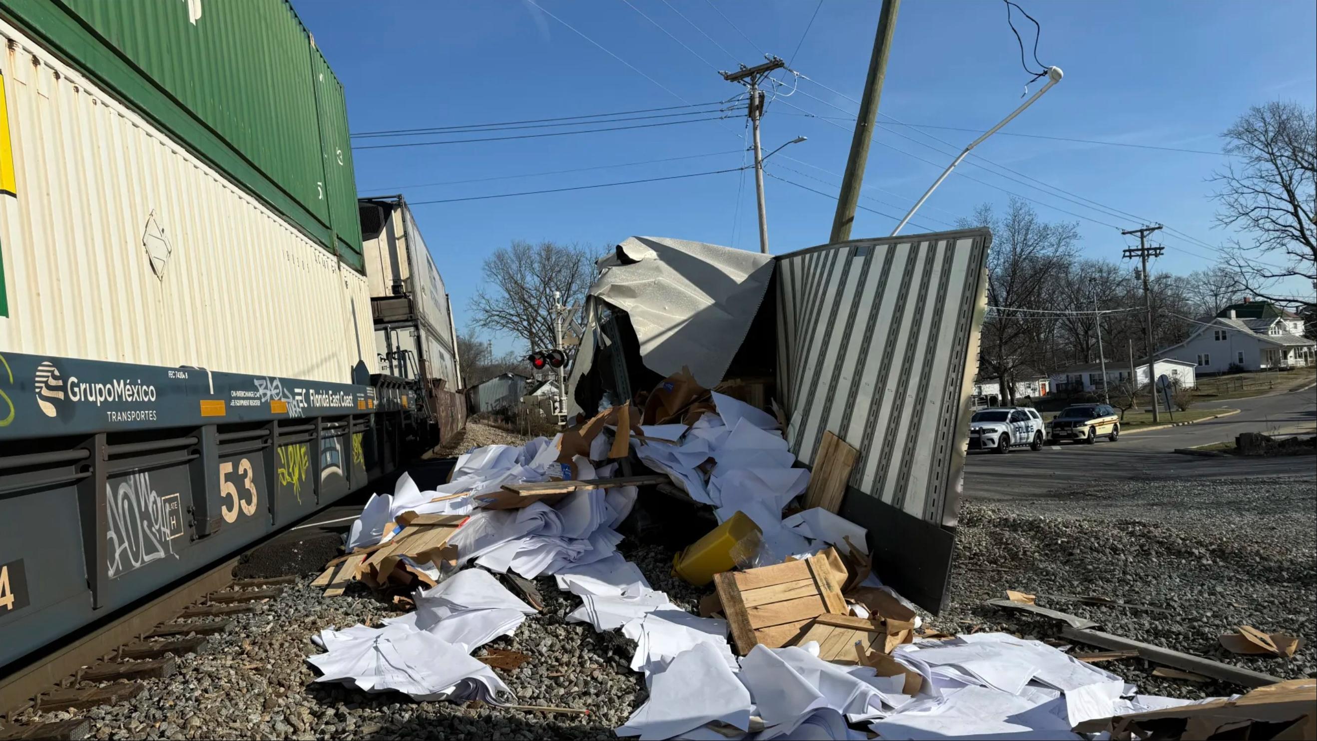 Semi Hauling Paper Products Gets Stuck on West Irish Street Crossing and Is Hit by Train as Driver Escapes