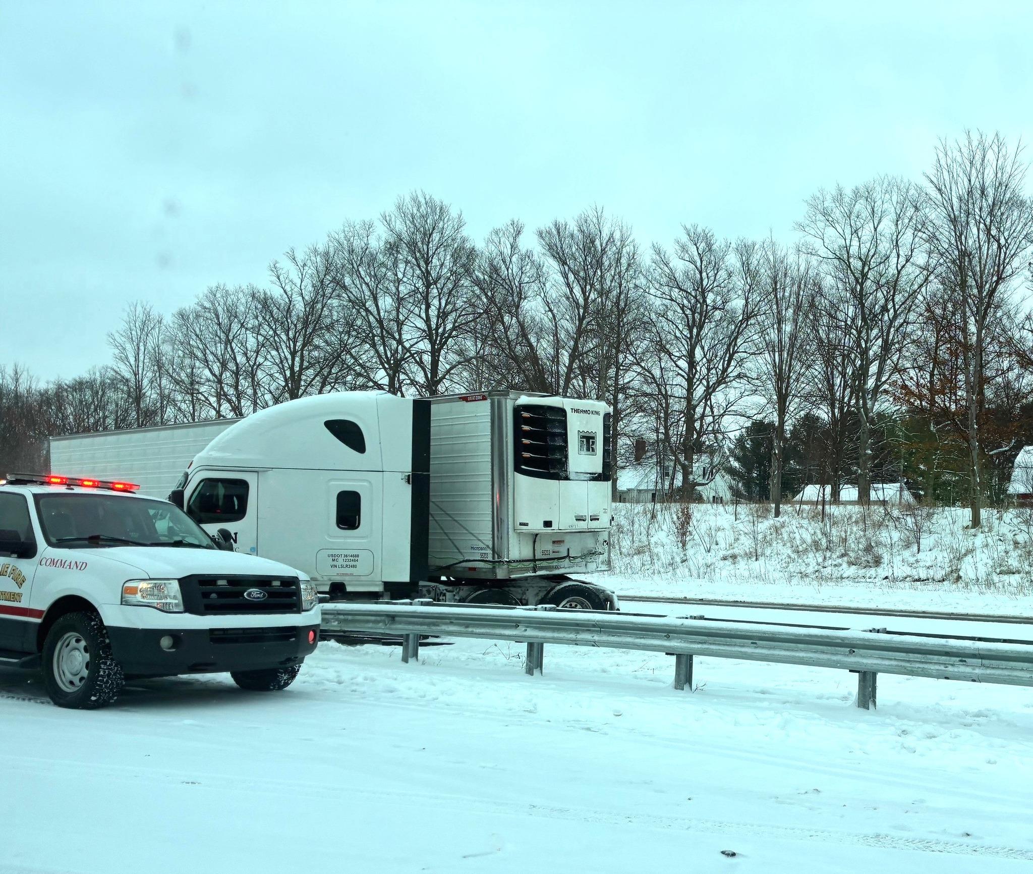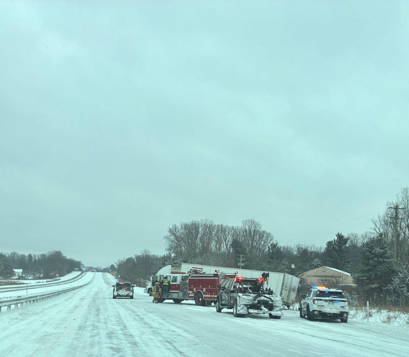 The Ingham County Sheriff’s Office said deputies responded at 10:50 a.m. to southbound US-127 south of Bellevue Road in Leslie Township after a semi-truck lost control in the snow and slid into the median.