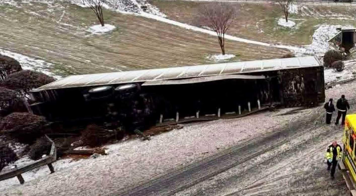 GASTONIA, NORTH CAROLINA — A tractor-trailer overturned on Interstate 85 northbound in Gaston County Sunday afternoon, forcing a temporary closure as icy winter weather created hazardous driving conditions, according to NCDOT and local officials.