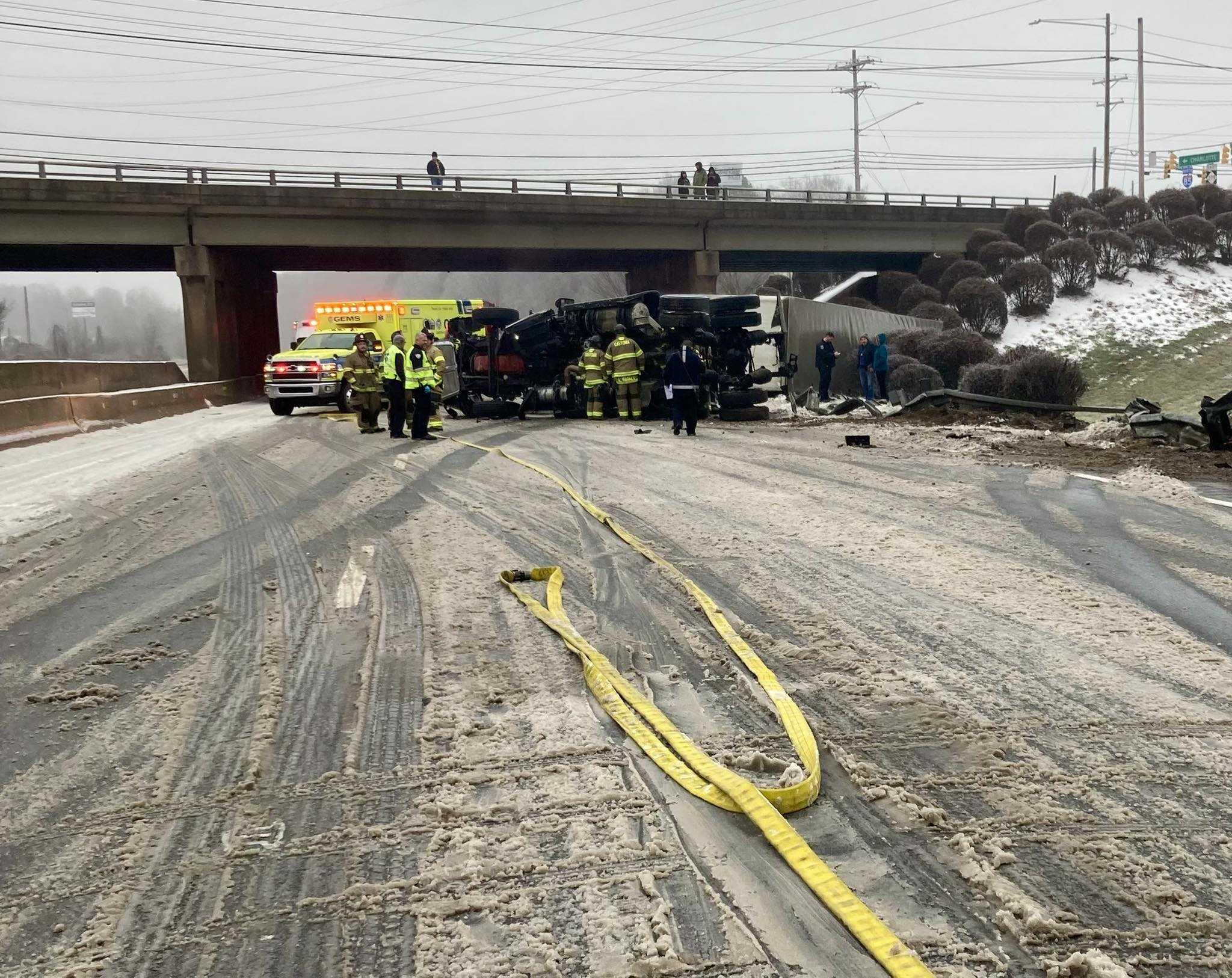 Semi Rolls Over on I-85 North in Gaston County as Ice Storm Creates Hazardous Roads and Crews Clear Scene Overnight