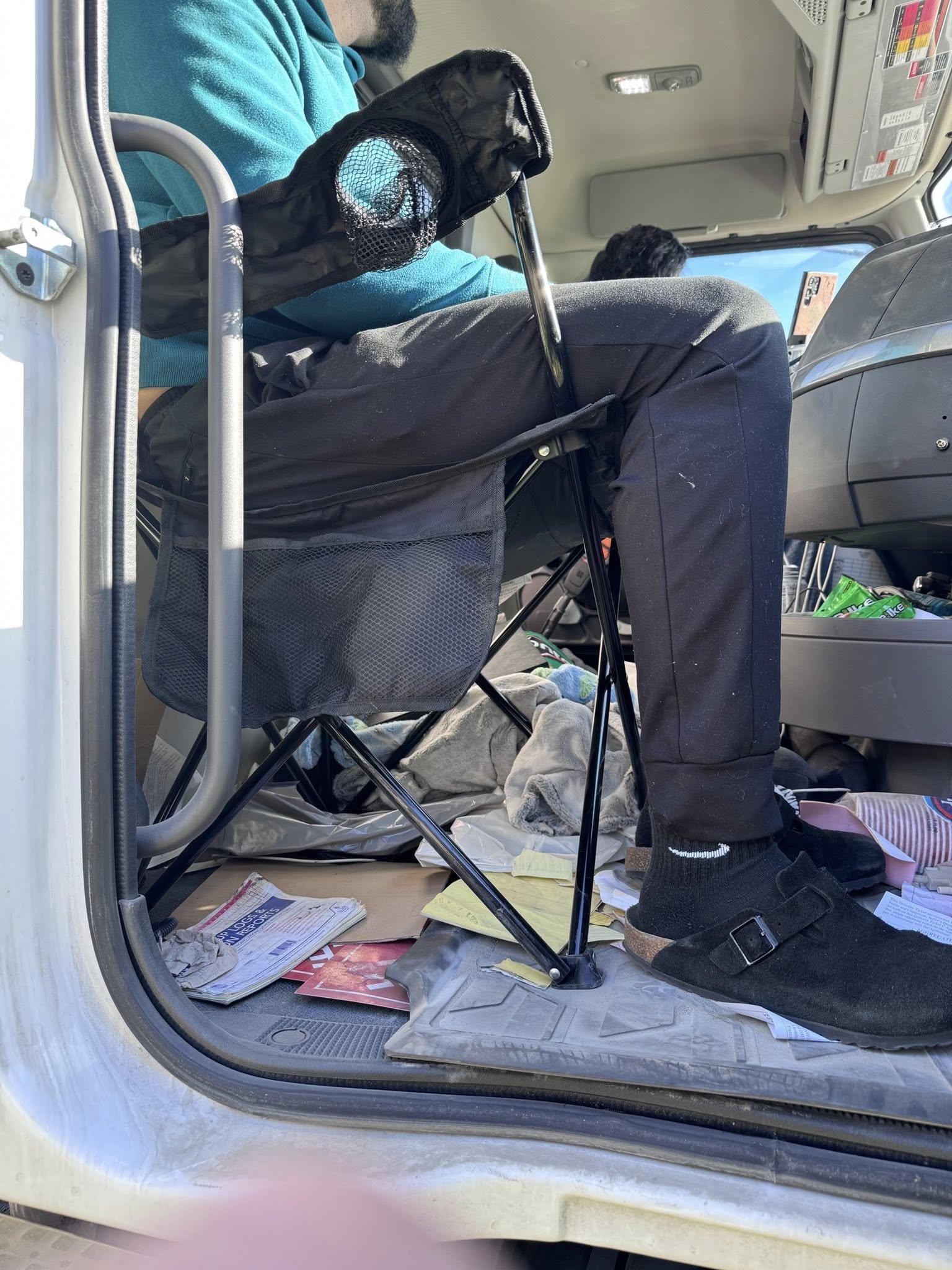 “This might look like a creative seating solution, but using anything other than the manufacturer-installed seat while driving could be a serious safety risk,” CHP said, noting vehicle seats are designed to work with seatbelts, airbags and crash forces — unlike a folding chair.