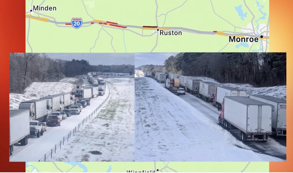 Hundreds Stranded on I-20 in North Louisiana Start Moving as Crews Clear Ice While Black Ice and Debris Still Threaten Drivers