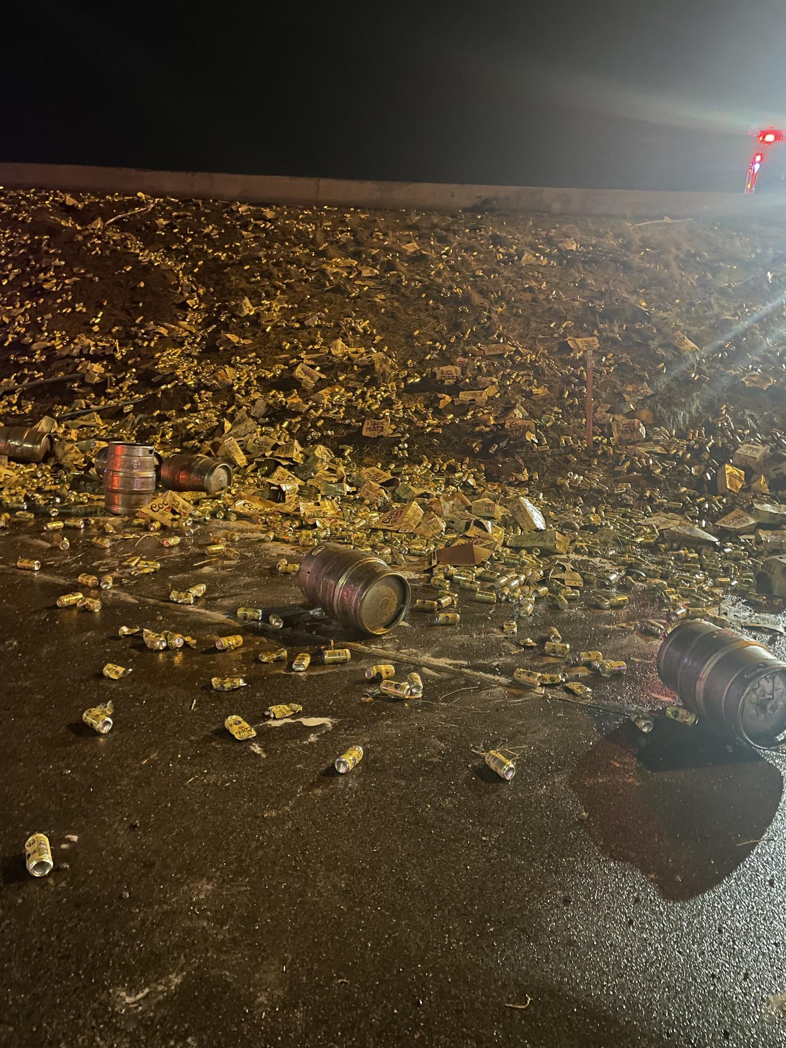 Cleanup crews worked for hours to remove the spilled alcohol and clear the roadway. Authorities said the area reopened after roughly five hours of cleanup.