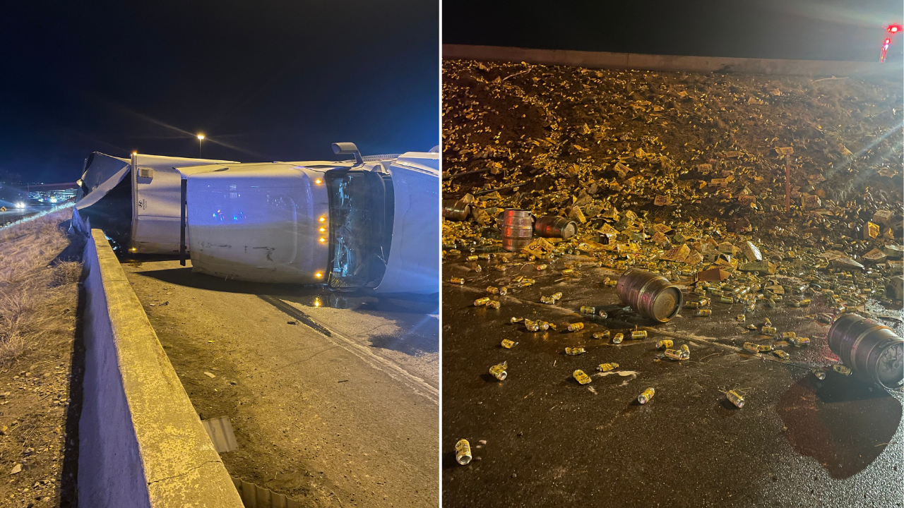 Semi Overturns After Tire Blowout, Spilling Hundreds of Beers and Dozens of Kegs in Wheat Ridge