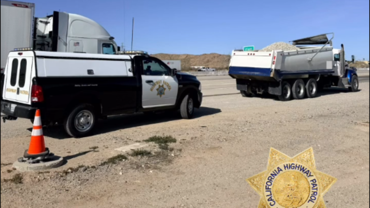 VICTORVILLE, Calif. — A dump truck hauling aggregate was stopped by California Highway Patrol troopers in the Victorville area on January 29, 2026, after officers spotted the truck traveling on the interstate with its load piled high and uncovered, CHP said.