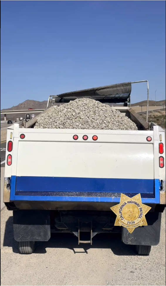 According to CHP, the stop revealed an even bigger issue: the truck was almost 20,000 pounds overweight for its axle configuration. Troopers said the uncovered load posed a hazard to other drivers — including the risk of rocks striking windshields — while the excess weight can contribute to additional wear and damage to roadways.