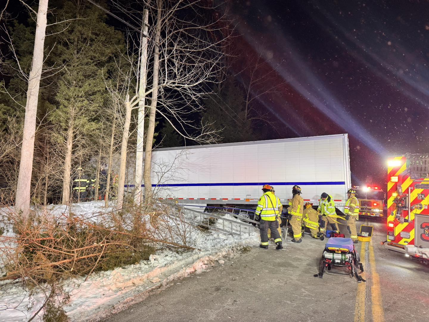 The driver was placed in a Stokes basket, safely removed from the scene, and transported by OCEMS. Officials said the patient was conscious and alert and had no apparent life-threatening injuries. The cause of the crash remains unknown.