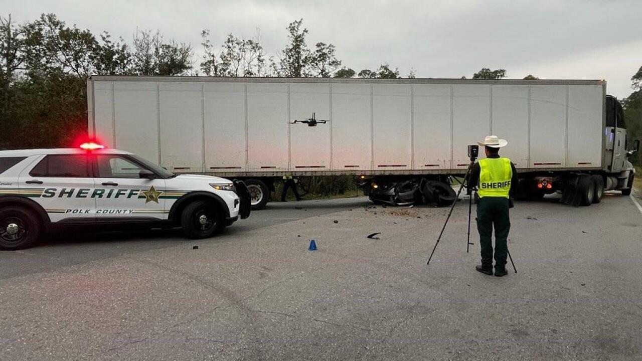 DAVENPORT, Fla. — A 61-year-old man from Zephyrhills was killed early Saturday, January 31, after his car was crushed in an underride crash with a semi-truck at the intersection of Deen Still Road and Wheeler Road, according to the Polk County Sheriff’s Office (PCSO).