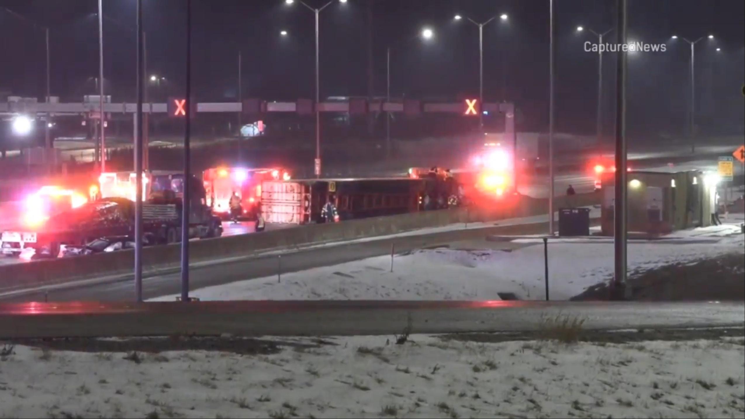 A female patient was also transported to Alexian Brothers Medical Center, officials said. The semi driver involved in the rollover was also transported to a hospital.
