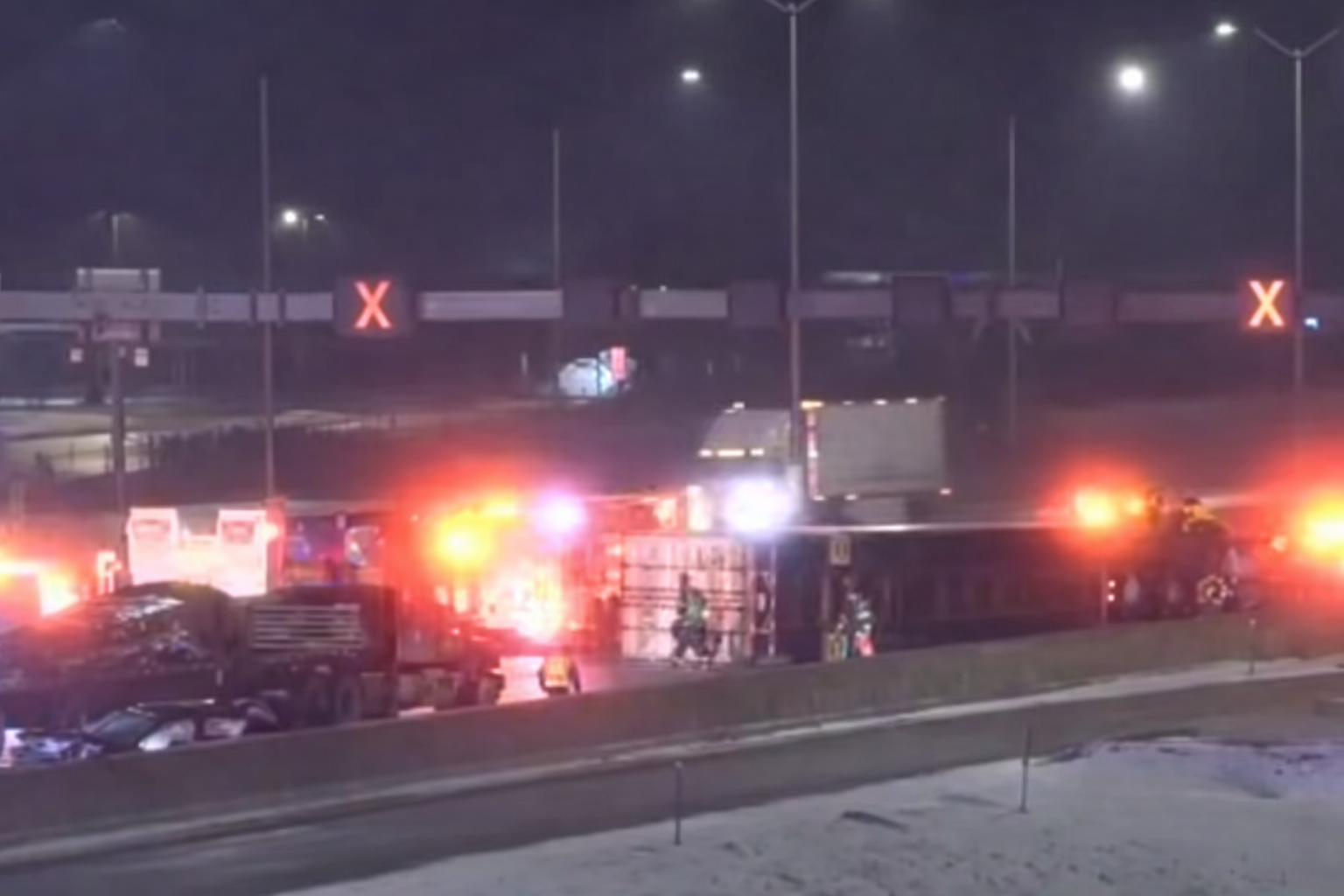 HOFFMAN ESTATES, ILLINOIS — A chain of crashes on I-90 westbound in Hoffman Estates early Monday left a private EMS driver severely injured after being struck at the scene while rendering aid, according to Illinois State Police. The incident began as a DUI crash involving two sedans, then escalated when a semi-trailer truck hit the scene and rolled over, pushing a damaged vehicle into the EMS worker and triggering a major shutdown of the Jane Addams Tollway.