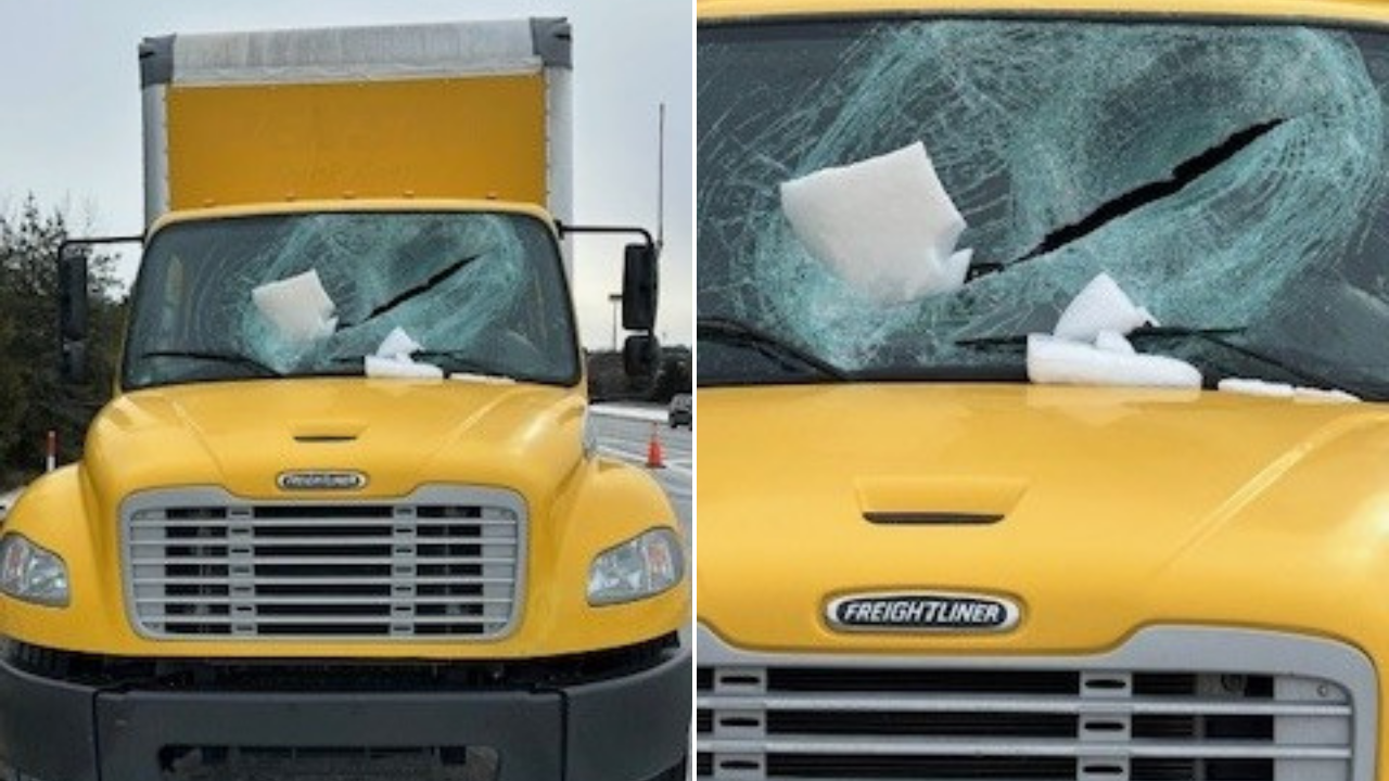 Sheet of Ice Flies Off Passing Vehicle and Smashes Through Box Truck Windshield on I-95 in Virginia, Injuring Driver as VSP Warns to Clear Roof Ice
