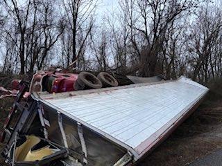 HARRIMAN, TENNESSEE — A tractor-trailer hauling food overturned along Interstate 40 West in Roane County early Tuesday, forcing a lane closure and prompting what TDOT says will be an “extensive cleanup.”