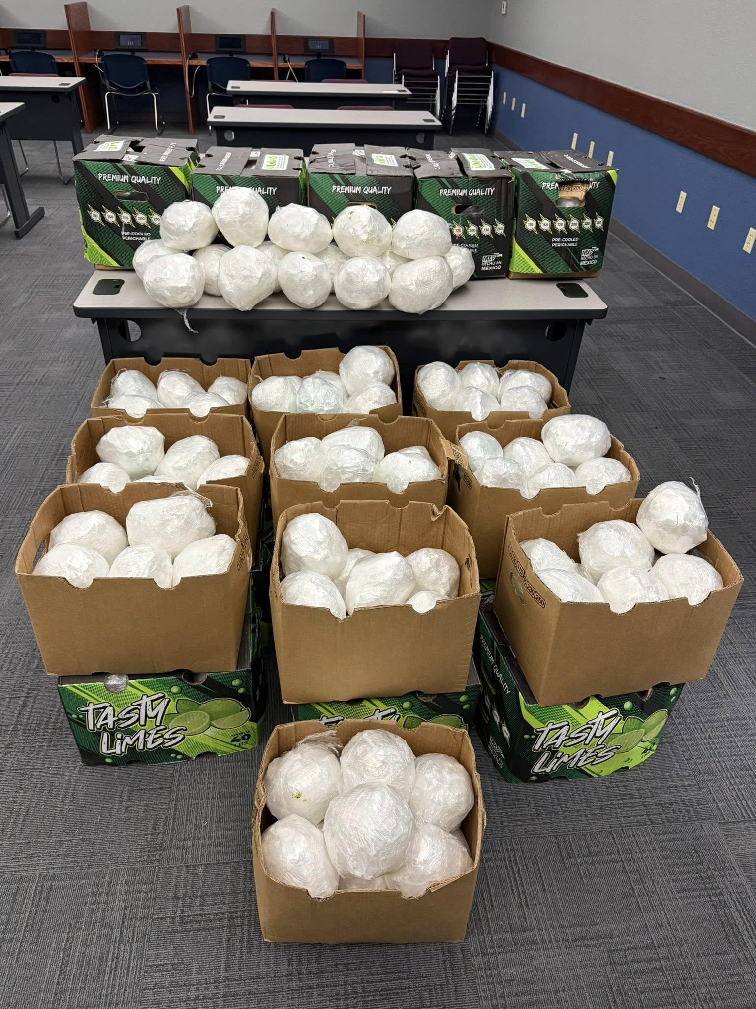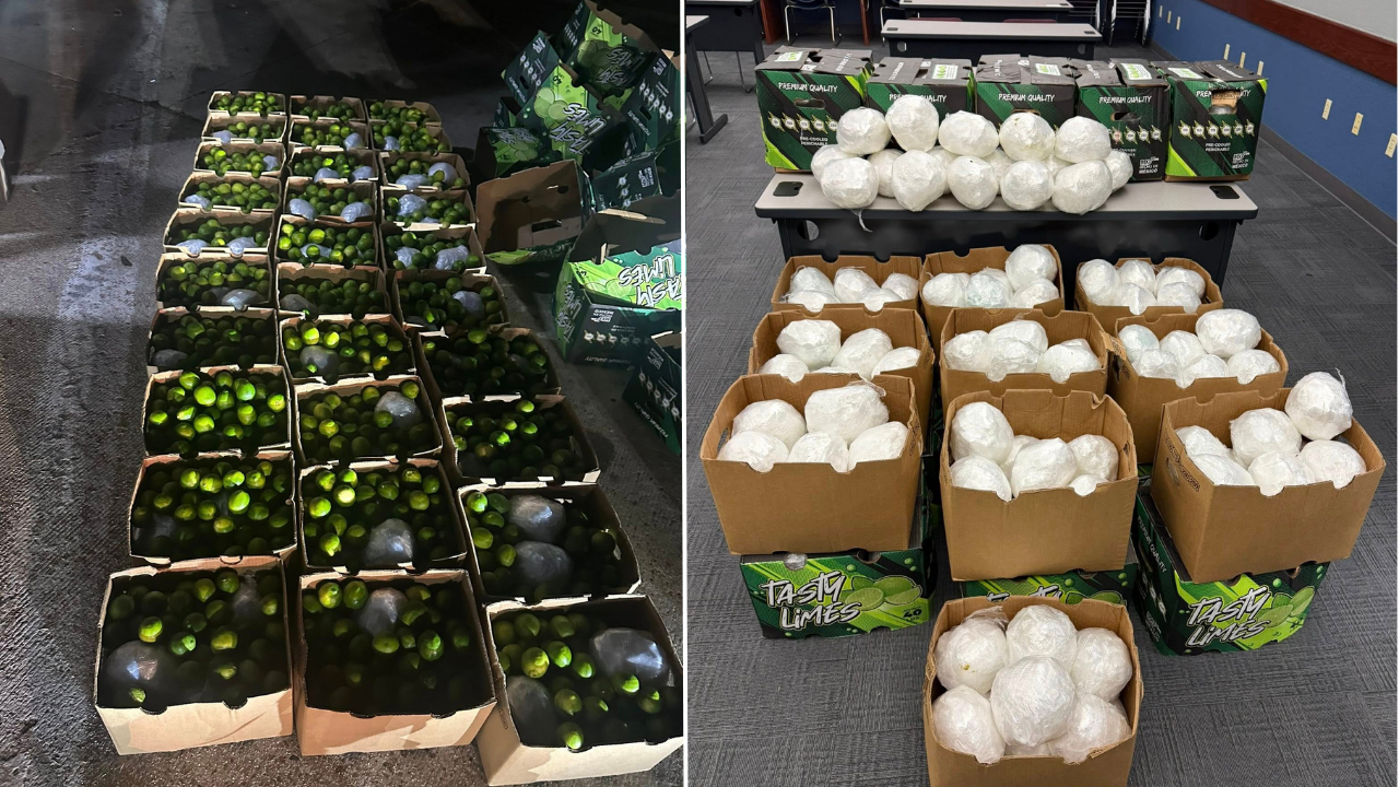 HOPE, Arkansas — A box truck carrying 10 tons of fresh limes was stopped at a weigh station in Hope and found to be hauling 620 pounds of methamphetamine concealed in the shipment, according to the 8th South Drug Task Force. Investigators estimated the seized drugs had a street value of $28.1 million.