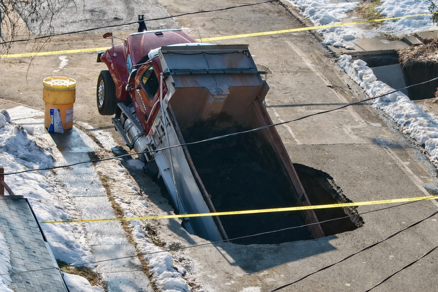 Dump Truck Delivering Asphalt Swallowed by Same Sinkhole It Was Sent to Repair, Damaging Water Main and Prompting Evacuations in Phillipsburg