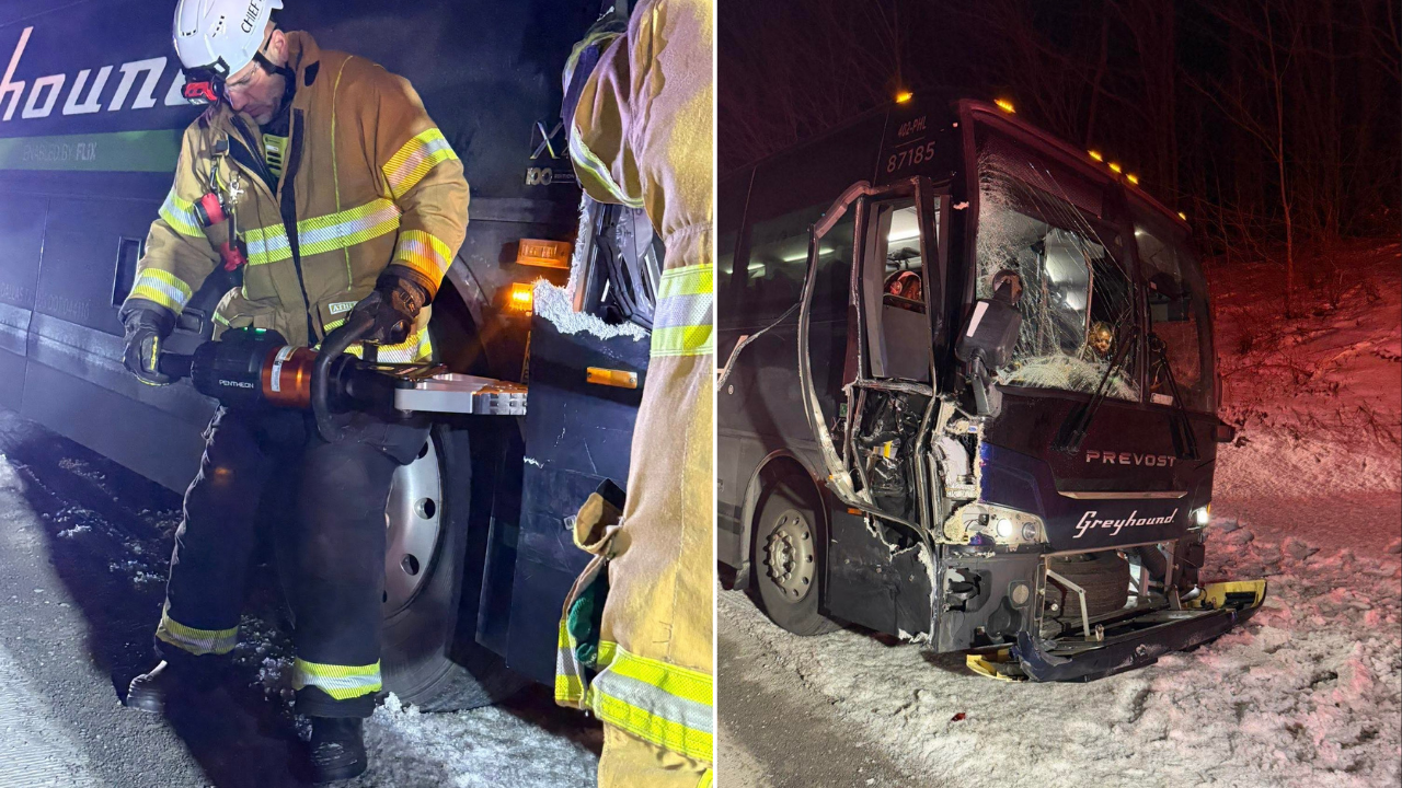 MOSCOW, PENNSYLVANIA — A multi-agency emergency response was launched early Friday morning after a Greyhound bus carrying 33 passengers struck the rear of a tractor-trailer on Interstate 380, leaving the bus's exit door inoperable and requiring rescue crews to forcibly remove it to evacuate passengers and reach the injured.