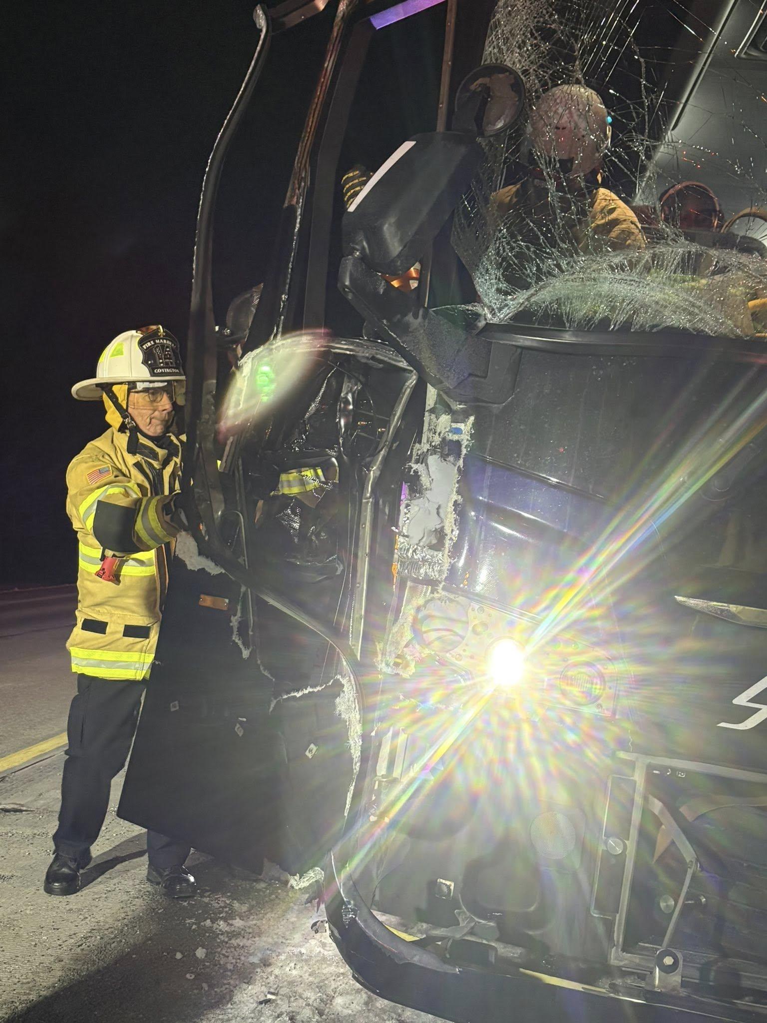 Bus Carrying 33 Passengers Strikes Tractor-Trailer on I-380 in Pennsylvania; Rescue Crews Cut Through Steel Door to Evacuate Injured