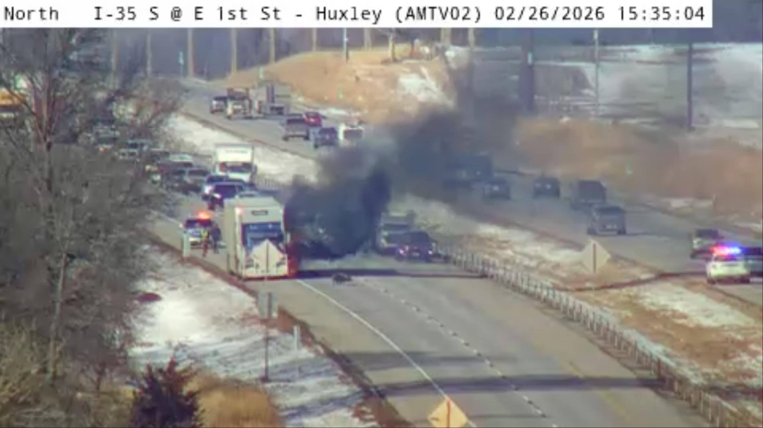 The right lane of southbound I-35 was initially blocked, causing approximately 20-minute delays for drivers. The road cleared shortly after 6 p.m., according to the Iowa Department of Transportation 511 website.