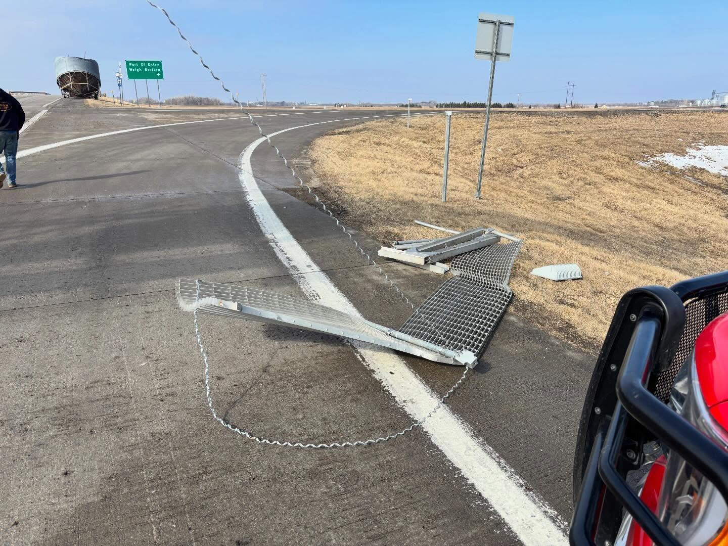 On March 3, 2026, NDHP took to social media to share photos of the incident, which showed visible damage to both the bin being hauled and the overhead sign it struck. Troopers used the incident as an opportunity to educate the public on over-height load requirements.