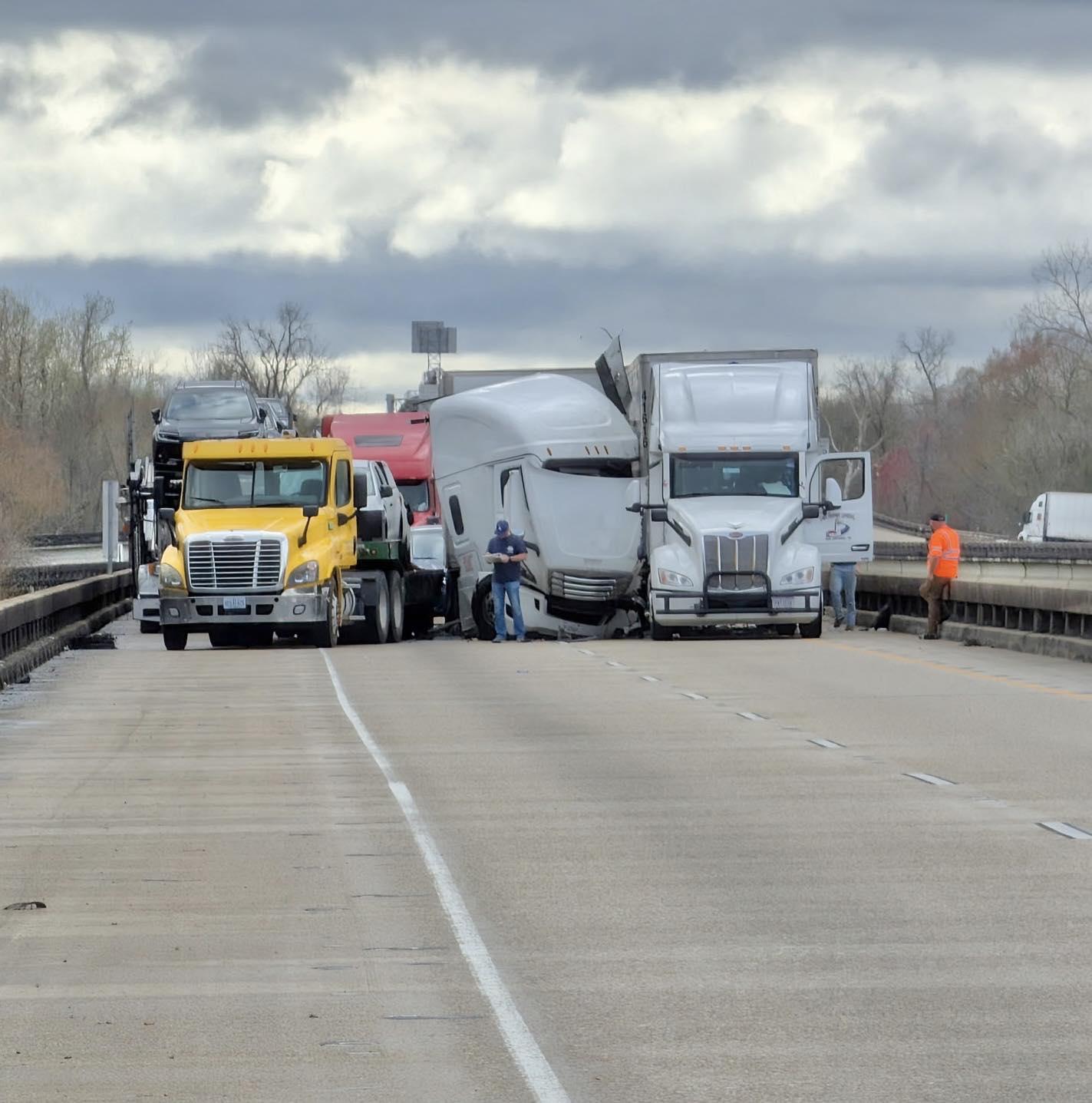 IBERVILLE PARISH, LOUISIANA — Both eastbound and westbound lanes of Interstate 10 on the Atchafalaya Basin Bridge were shut down Tuesday after multiple crashes involving several 18-wheelers near Whiskey Bay.