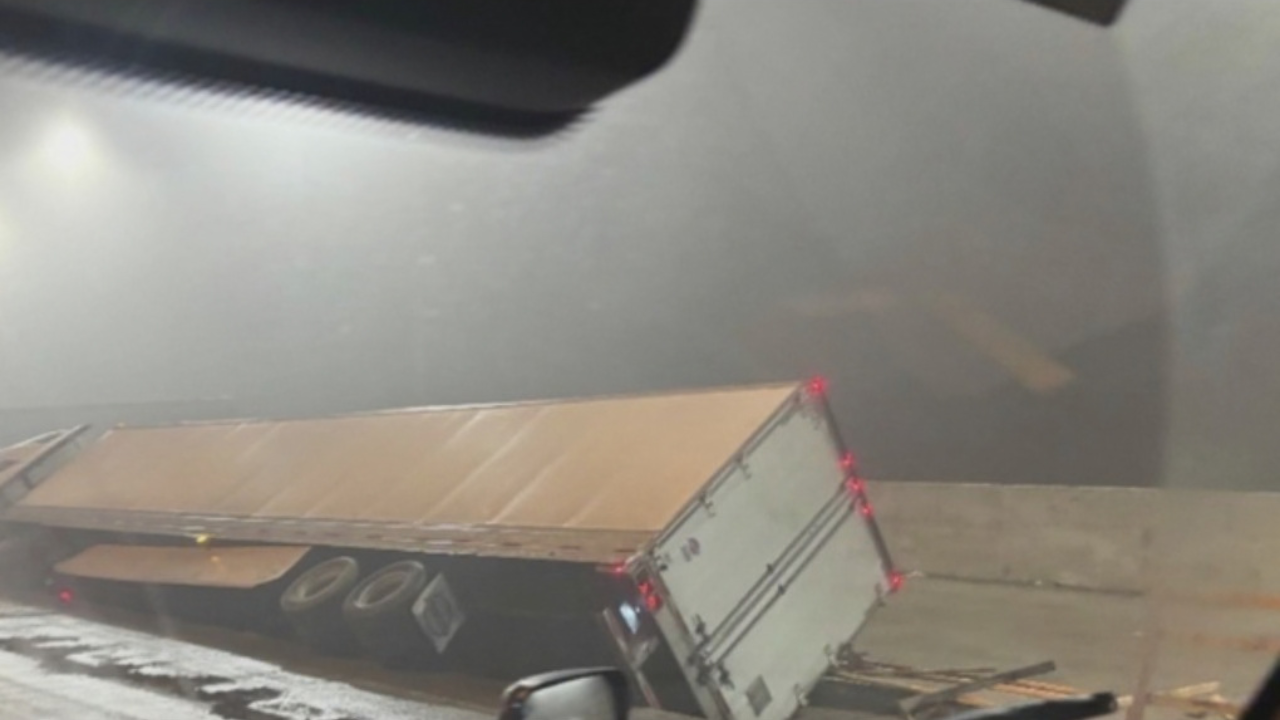 ELMHURST, ILLINOIS — A semi-truck carrying approximately 41,000 pounds of granulated plastic was left partially dangling off the edge of an unfinished elevated ramp on the Eisenhower Expressway early Thursday morning after crashing through temporary concrete barriers, shutting down inbound lanes for several hours.
