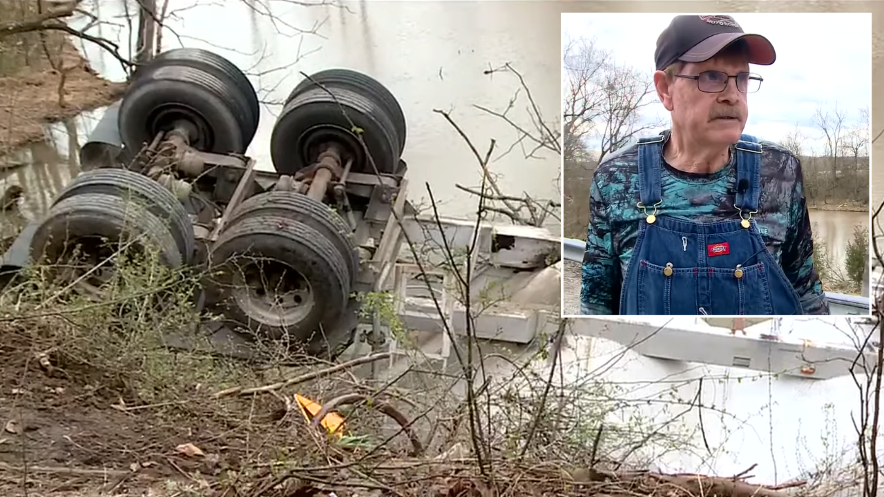 A passing truck driver, Scott Cadle, spotted the skid marks and damaged guardrail while driving along the same road and stopped to investigate. "I saw the skid marks and the guardrail was down," Cadle said. He went toward the edge of the embankment and called out, and was surprised when Busman responded. "He was upside down. His head was in the water. He had to kind of move his head to hold it up to breathe," Cadle said. "I thought, oh man, I got to get him out of here." Cadle immediately called 911 and attempted to free Busman while waiting for help to arrive. "We busted the window out and we didn't have anything to work with but a bar, so we couldn't get the door open," Cadle said.