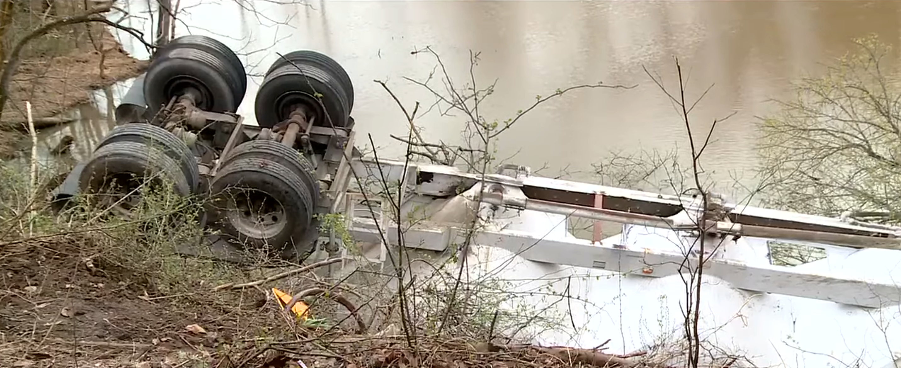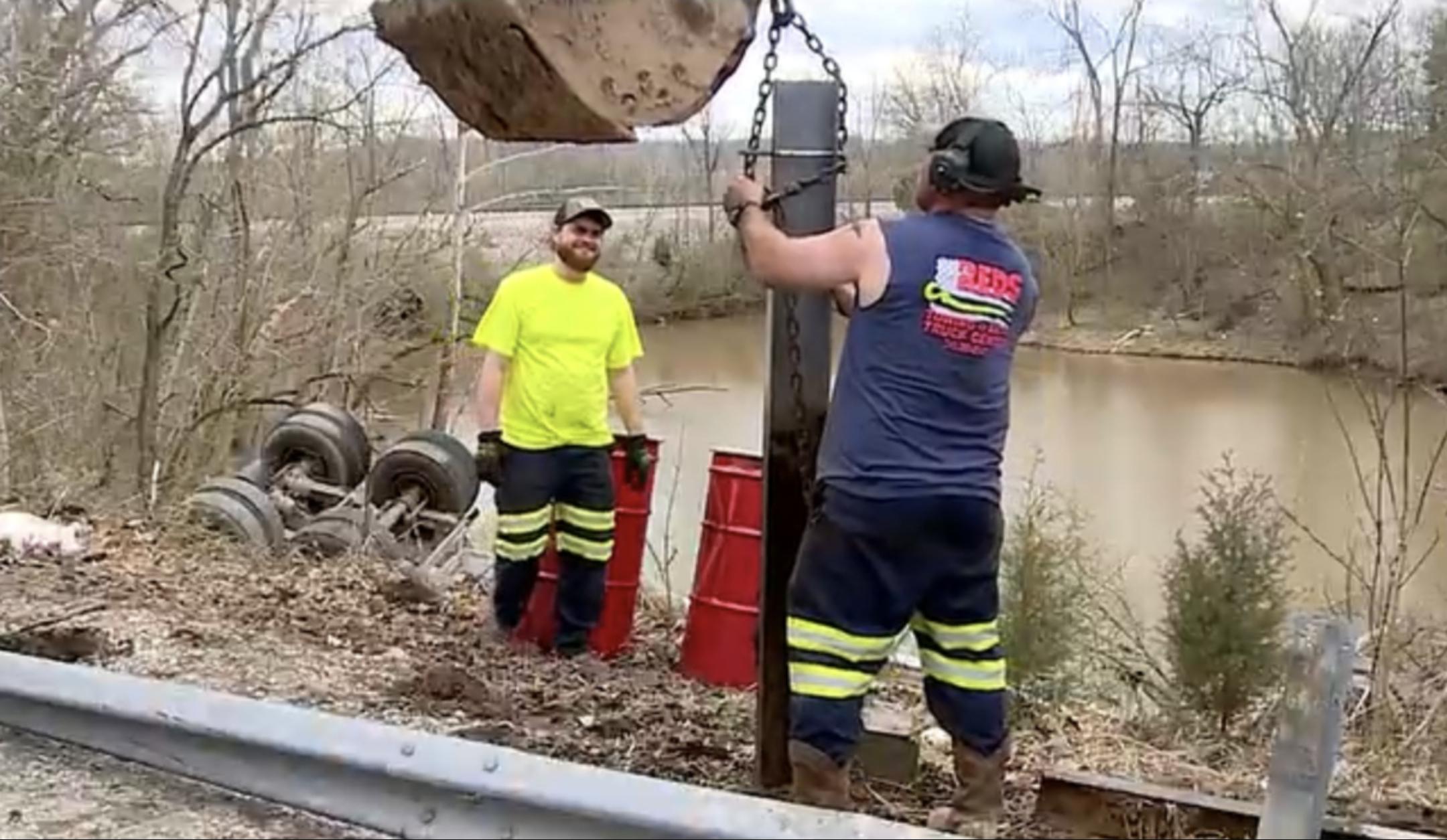 Passing Trucker Spots Damaged Guardrail and Skid Marks, Finds West Virginia Truck Driver Trapped Upside Down With Head Underwater in Overturned Cab and Saves His Life — Driver Charged With Failure to Maintain Control