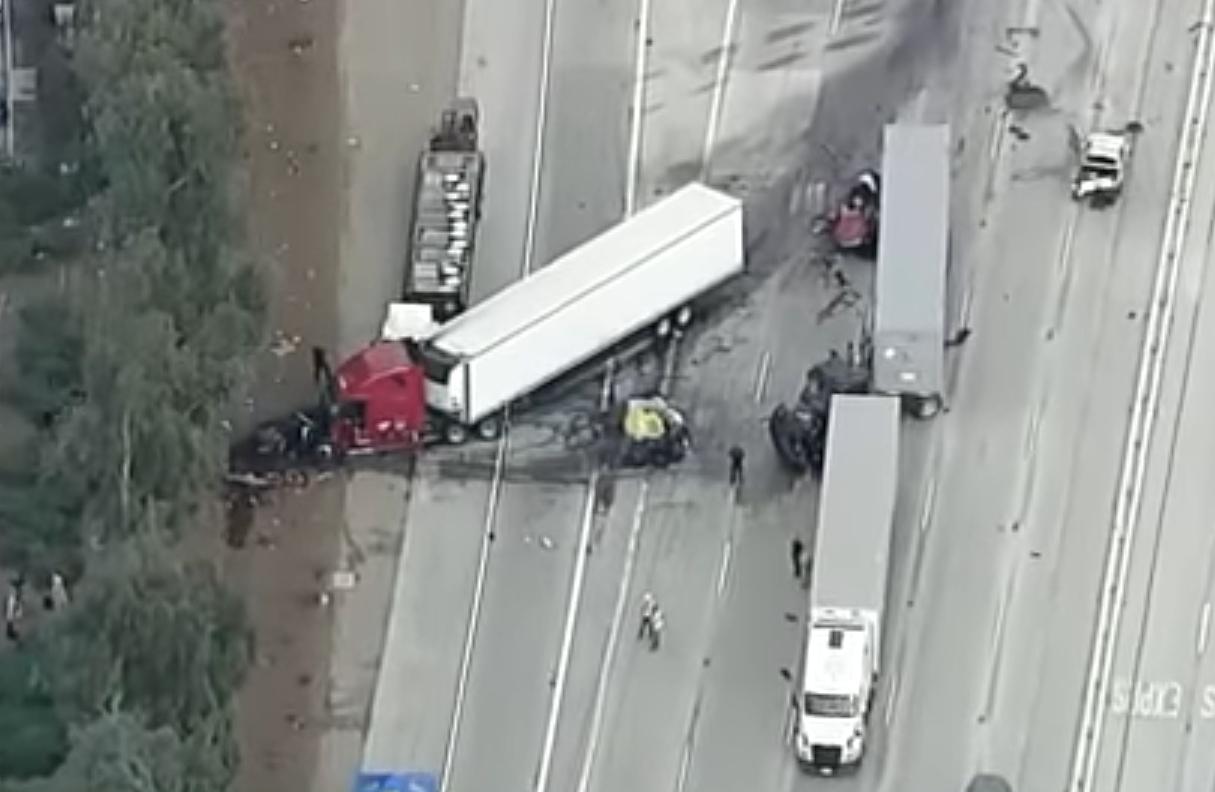 Two killed after four semitrucks, multiple vehicles crash on 10 Freeway in Ontario