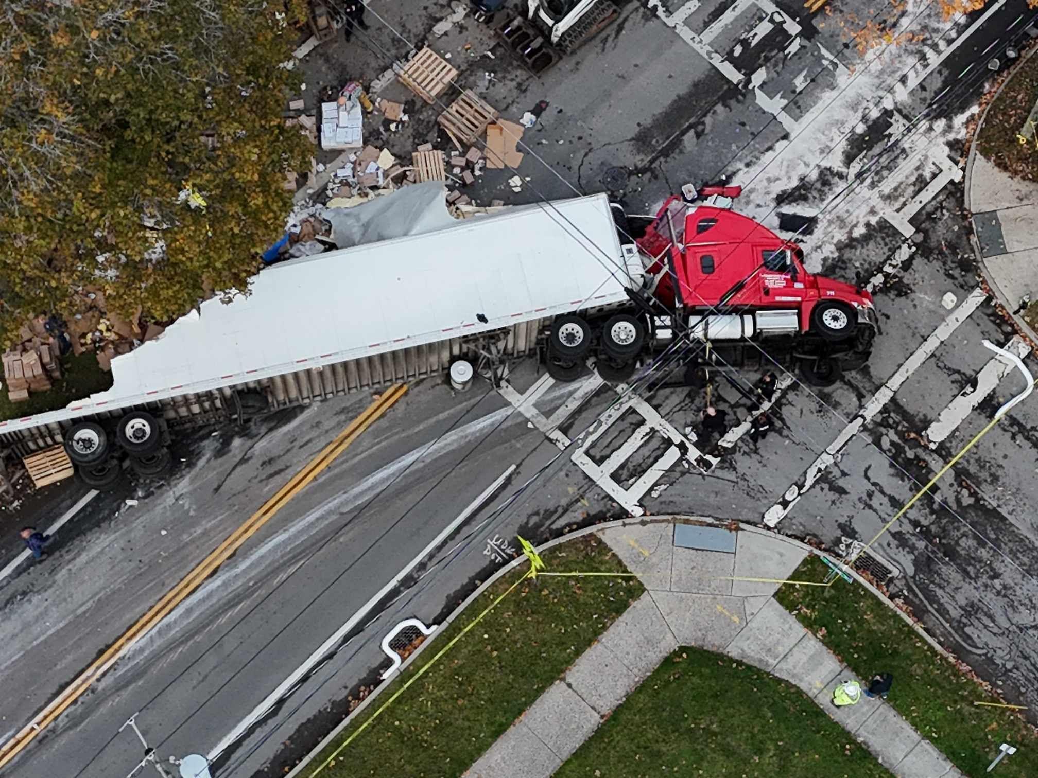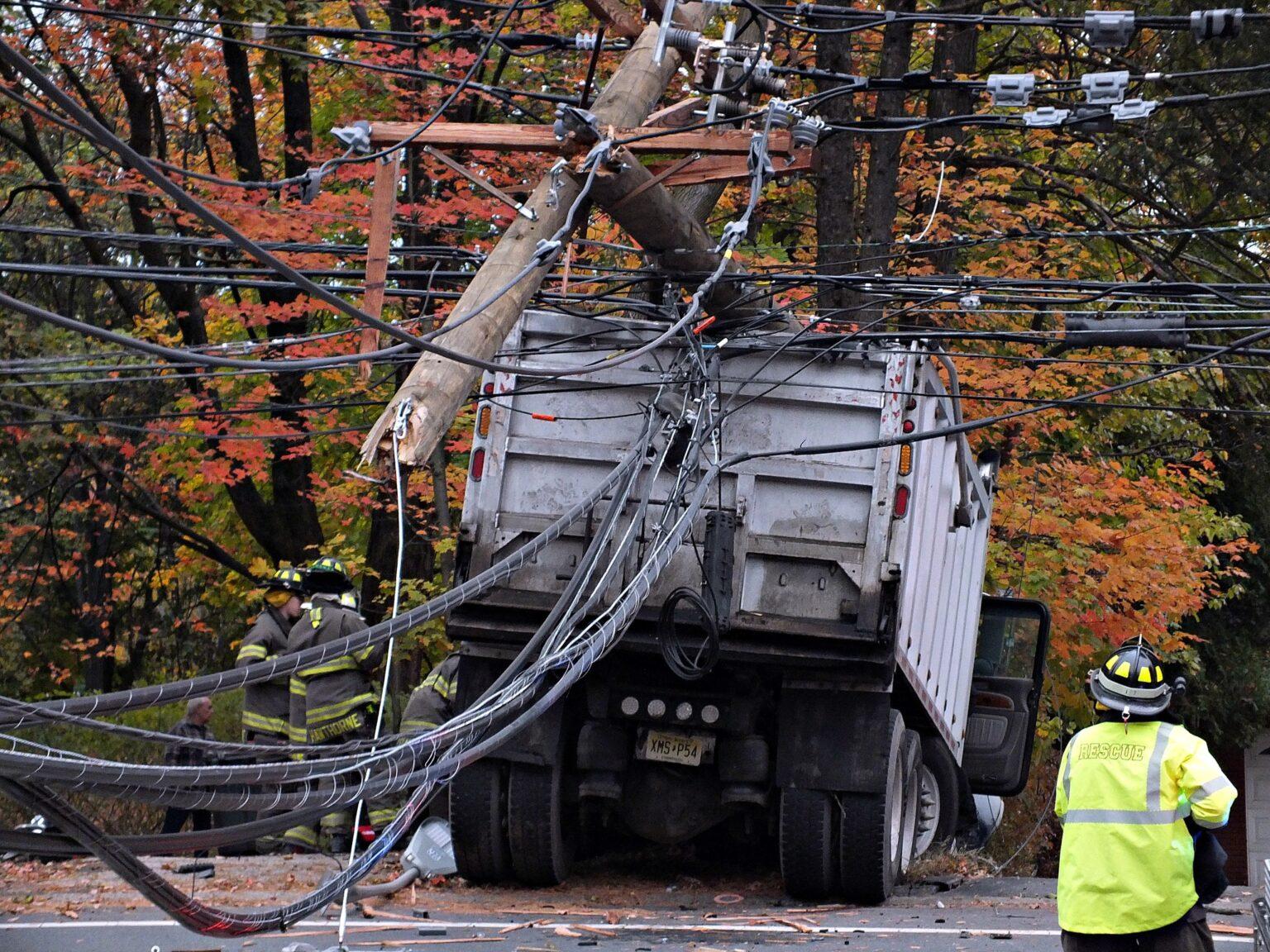 The crash occurred on October 29 when the heavy truck, traveling downhill, lost control and struck a utility pole, snapping it in half and bringing down live power lines....